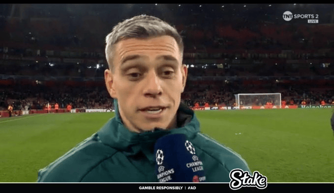 虎扑01月16日讯 阿森纳进球功臣,边锋特罗萨德在2-1战胜托特纳姆热刺的北伦敦德比赛后接受TNT Sport采访。